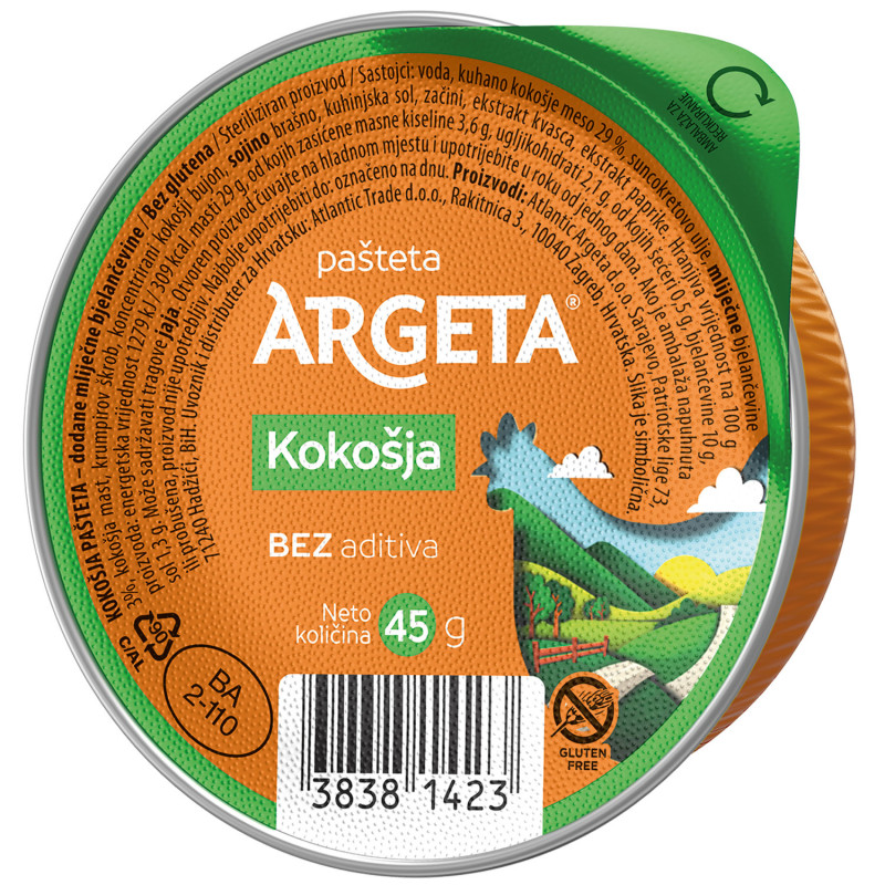 Kokošja pašteta je odlične mazivosti i izvanredne kvalitete. Prepoznatljiv dizajn ove konzerve čuva pravo blago okusa zahvaljujući visokom udjelu kokošjeg mesa i skladu korištenih začina.