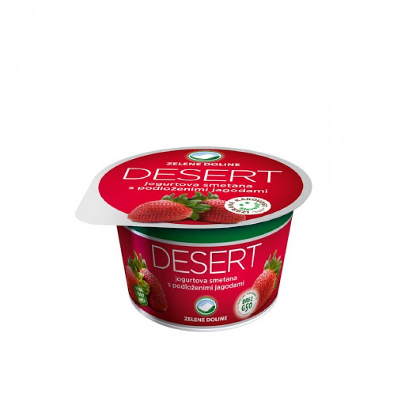 Desert vrhnje s jagodama je pun i osvježavajući okus s aromom vanilije i voćem na dnu. Proizveden od svježega mlijeka i bez GMO