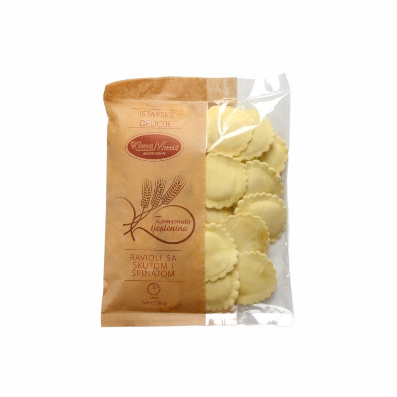 Brzo zamrznuti ravioli sa skutom i špinatom.